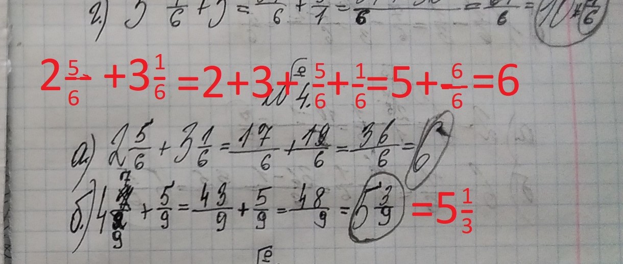 Сложение и вычитание СМЕШАННЫХ ЧИСЕЛ : Целые можно всегда складывать отдельно, и прибавлять к ним сумму дробных частей.А при ВЫЧИТАНИИ тоже можно от целой части отнять другую целую часть - дальше будут поменьше числители. См. прикреплённый файл. Прикрепленные файлы: 1) /assets/attaches/15471/original/%D0%A1%D0%9C%D0%95%D0%A8%D0%90%D0%9D%D0%9D%D0%AB%D0%95_%D1%87%D0%B8%D1%81%D0%BB%D0%B0.jpg?1588526988 |