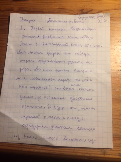 Дорогой Отец Иван, добрый вечер, сейчас я вам посылаю наконец то сделанное мной домашнее задание по теме "Декабристы". Проверьте его, пожалуйста, когда вам будет удобноПрикрепленные файлы: 1) Домашнее задание по теме "Декабристы" |